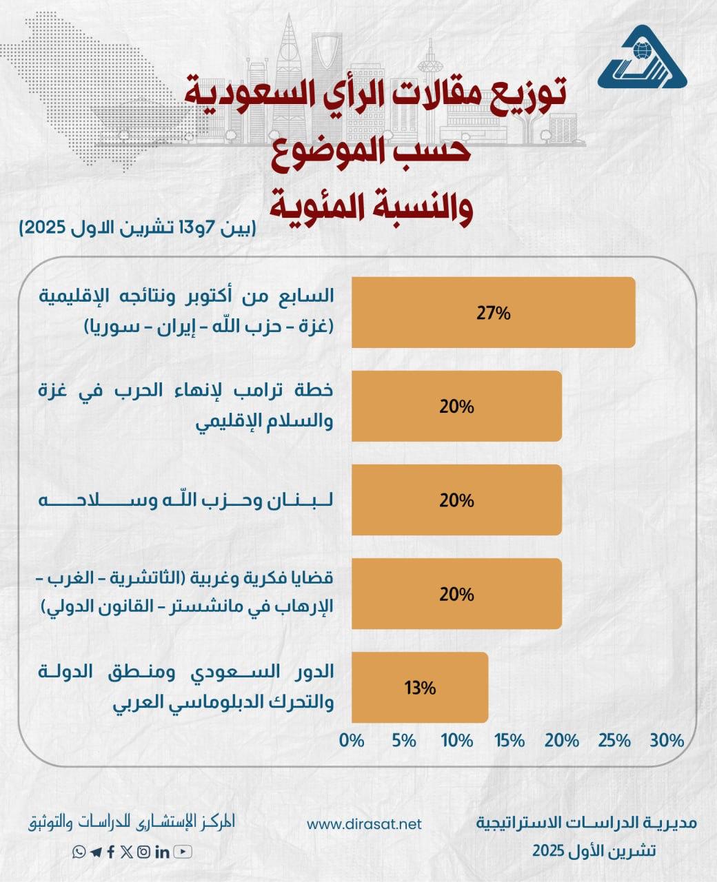 توزيع مقالات الرأي السعوديةحسب الموضوع والنسبة المئوية